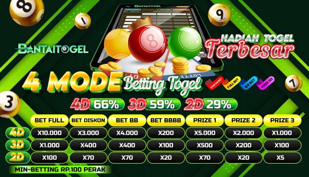 Selaku salah satu situs togel terbanyak di dunia judi 4d, BANTAITOGEL menawarkan game togel online yang terlengkap. Dengan ratusan tipe game tototogel yang dapat diseleksi, semacam Togel Singapura (SGP), Togel Hongkong (HK), Togel Sydney (SDY), Togel Cambodia, Togel Taiwan, serta Togel Cina, para pemain dapat memilah game yang cocok dengan kemauan mereka. Kami pula jadi sala satuh situs togel yang terdapat pasaran Jakarta buat member yang pengen coba togel Indonesia ini.